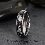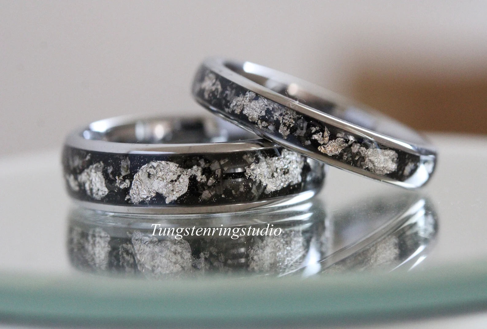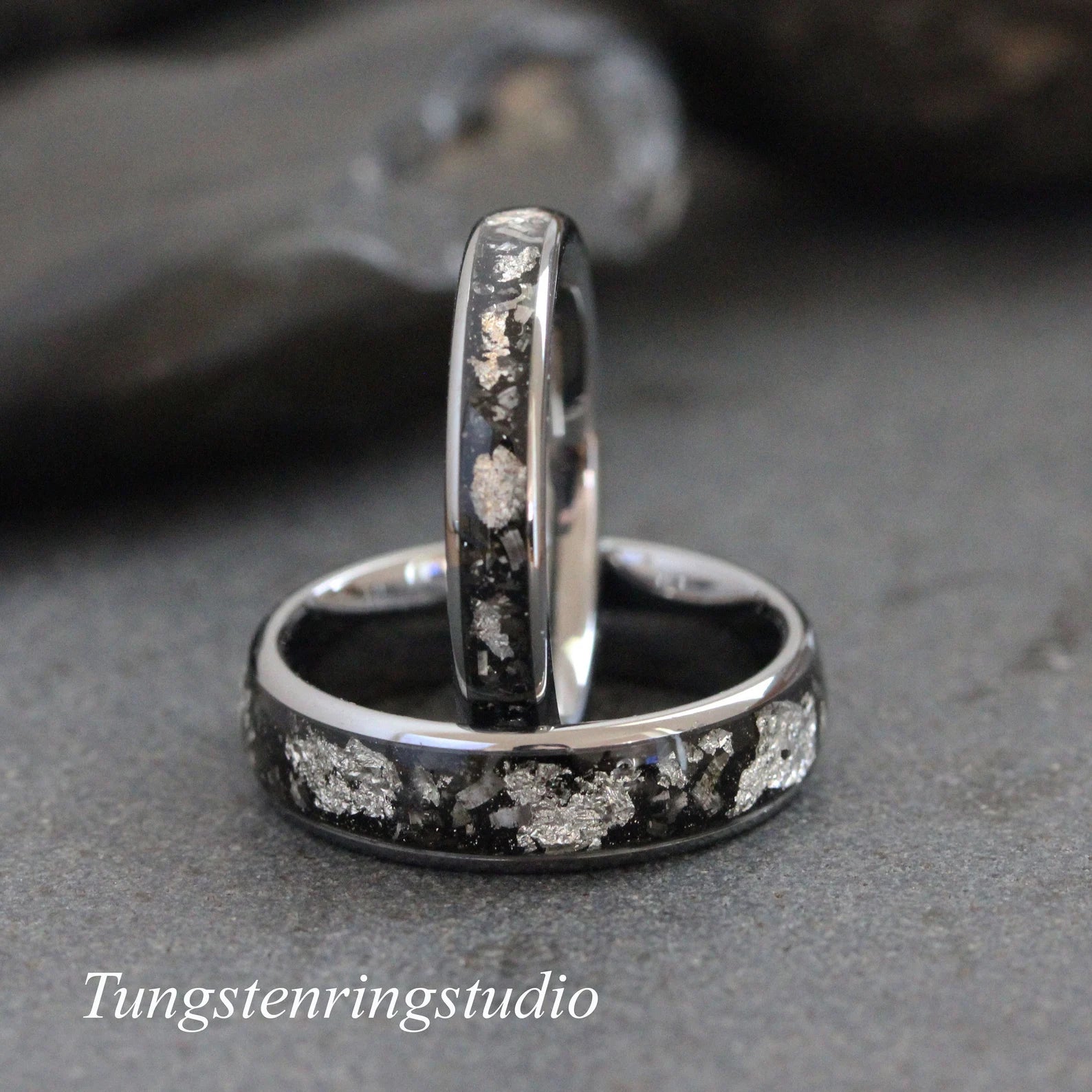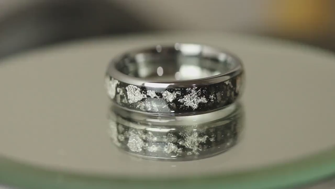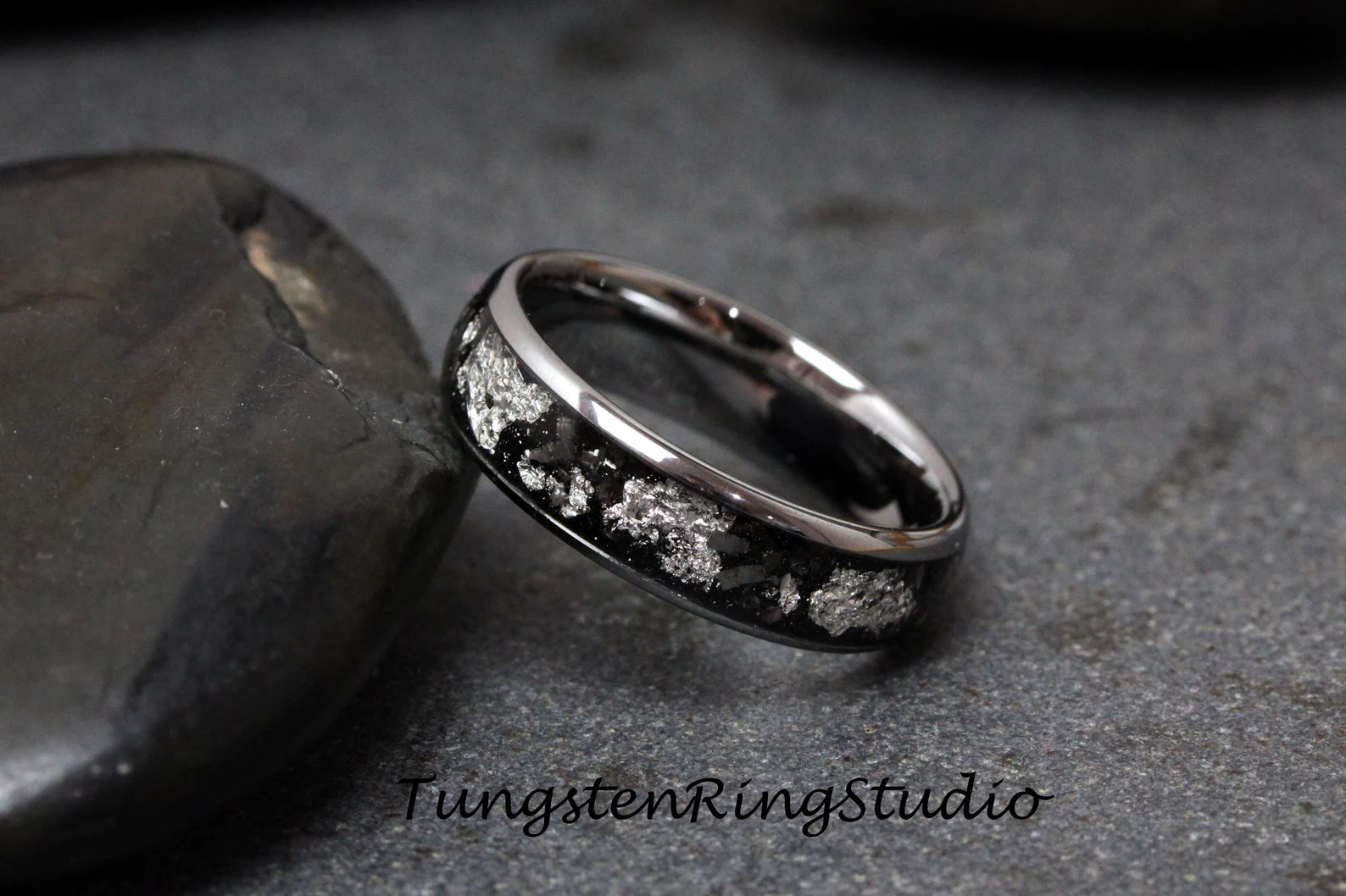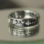 Silver Leaf Meteorite Polished Hammered Tungsten Carbide Ring – TungstenRingStudio
