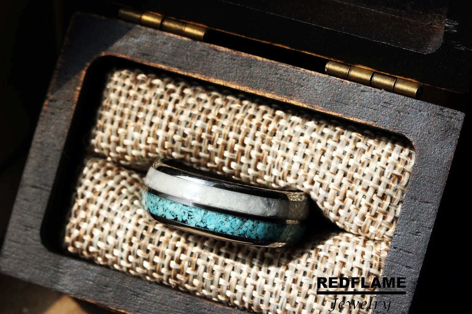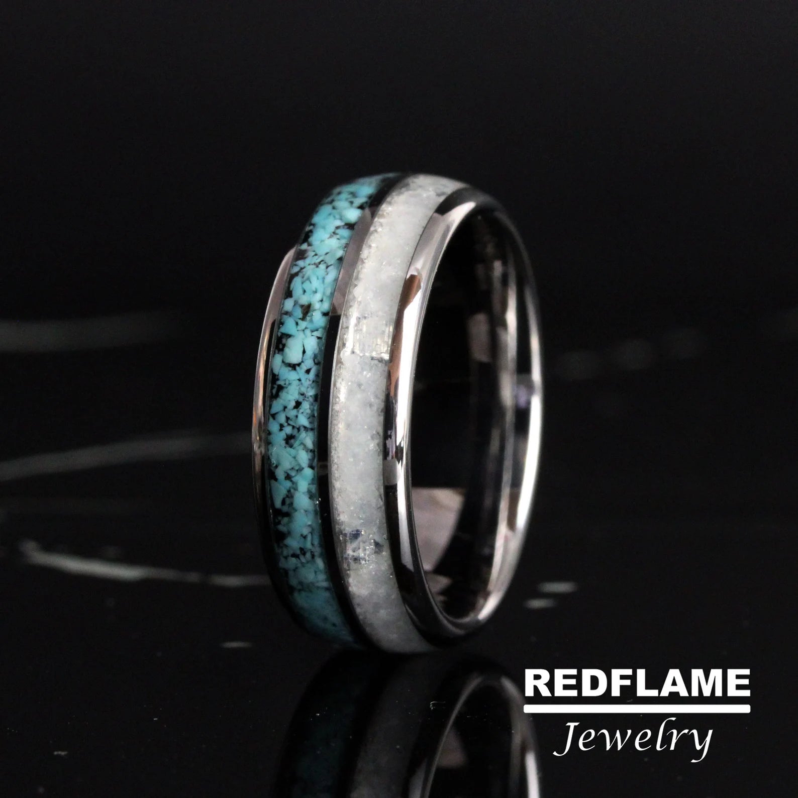 Turquoise Rainbow Moonstone Tungsten Carbide Ring- Custom Order – TungstenRingStudio