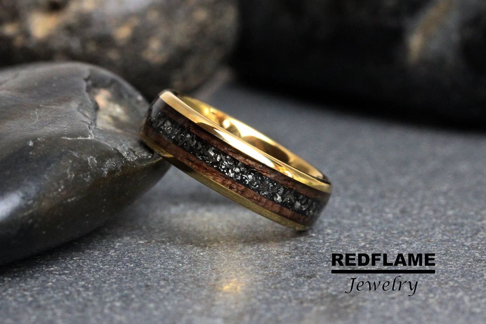 Walnut Wood Meteorite Tungsten Ring- Custom Order – TungstenRingStudio