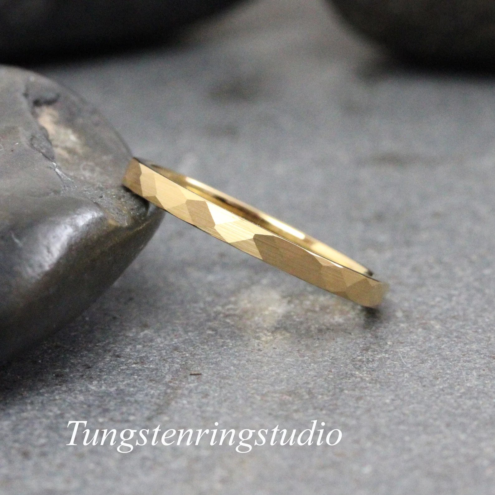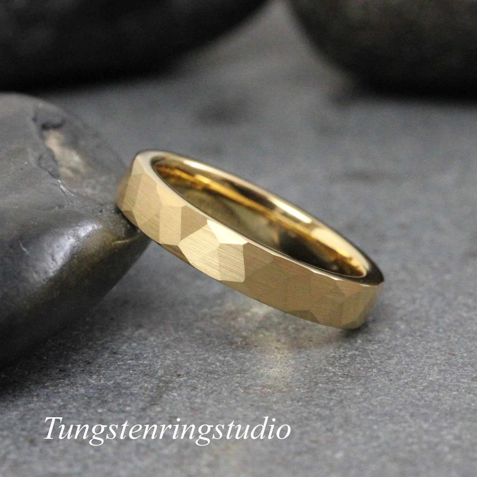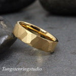 Yellow Gold Hammer Tungsten Carbide Ring 2,4,6 mm – TungstenRingStudio