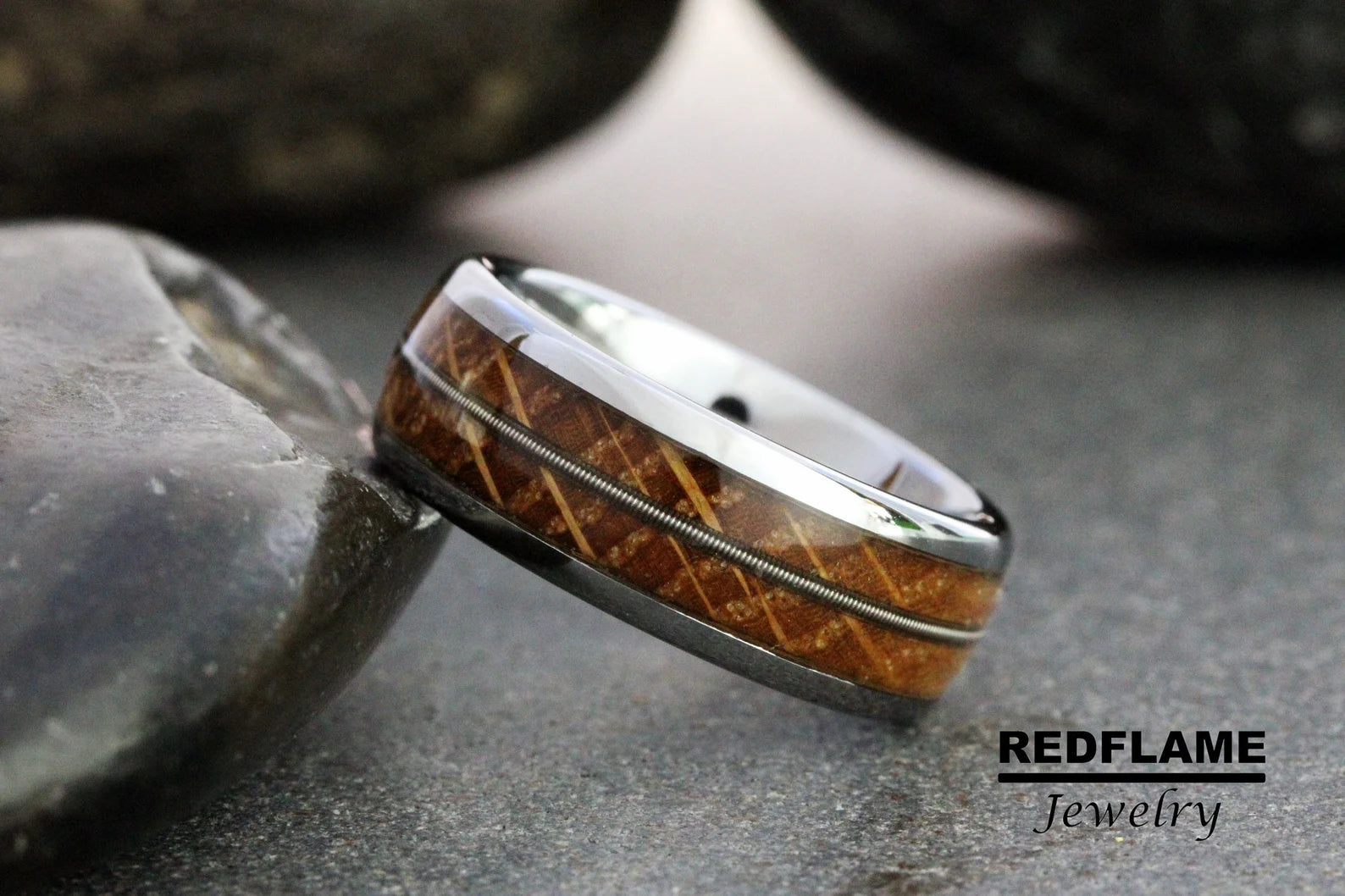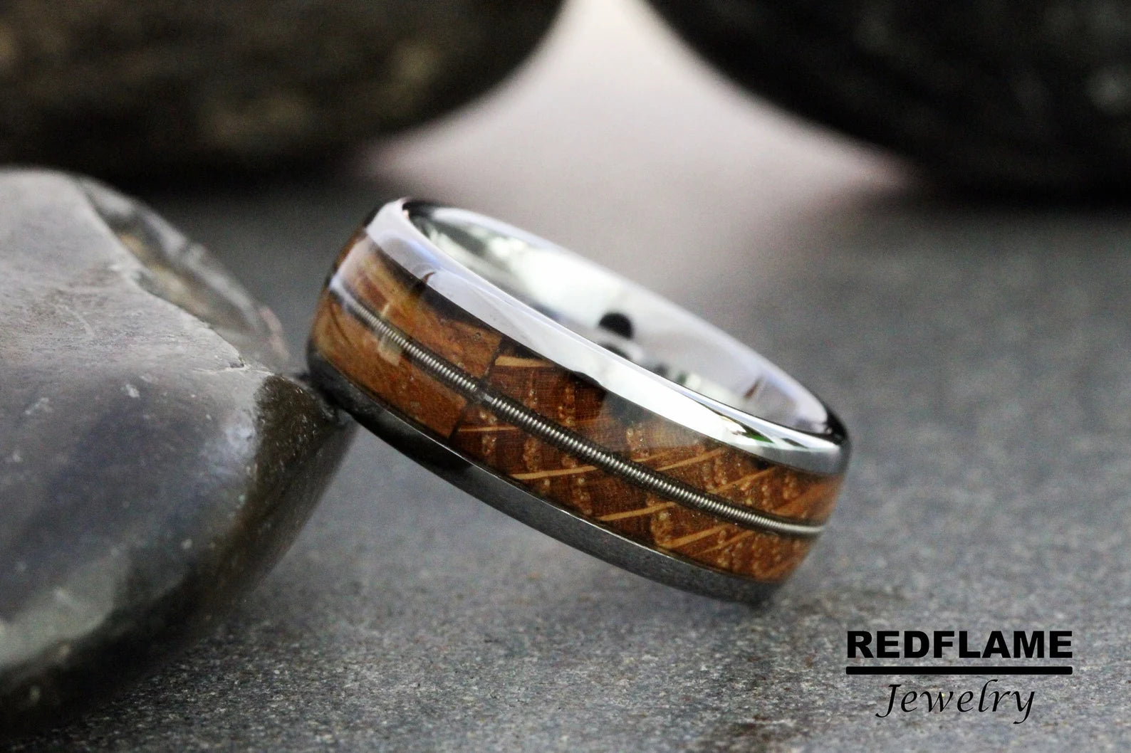 Your Own Guitar String Inlaid Ring, Use Your Own Guitar String, Wedding Ring, Barrel Guitar Ring, Tungsten Carbide Mens Ring Wedding Ring
