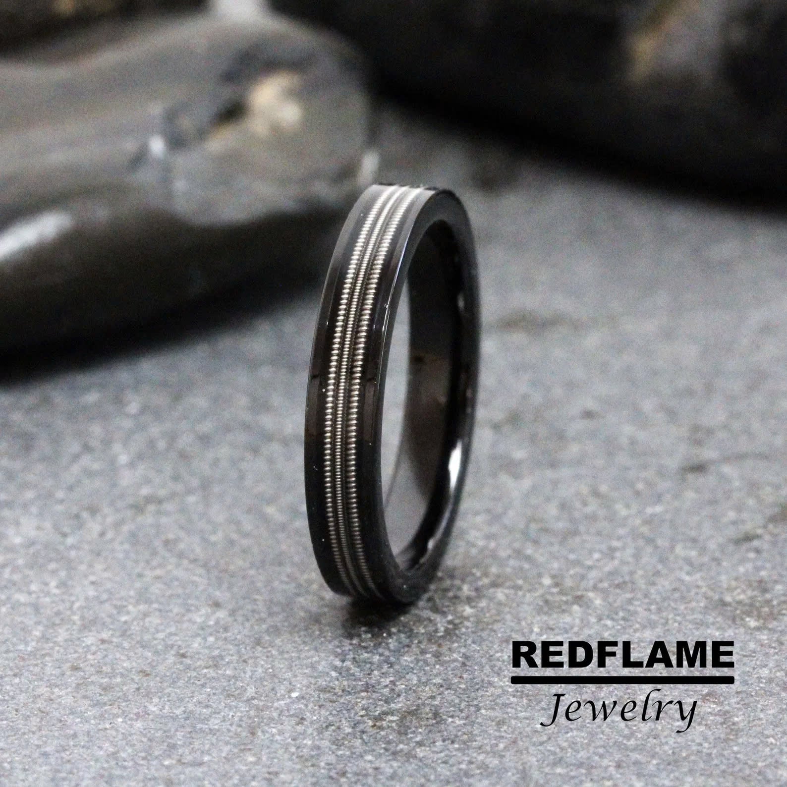 Your Own Guitar String Triple Inlay Black Tungsten Carbide Ring- Custo – TungstenRingStudio