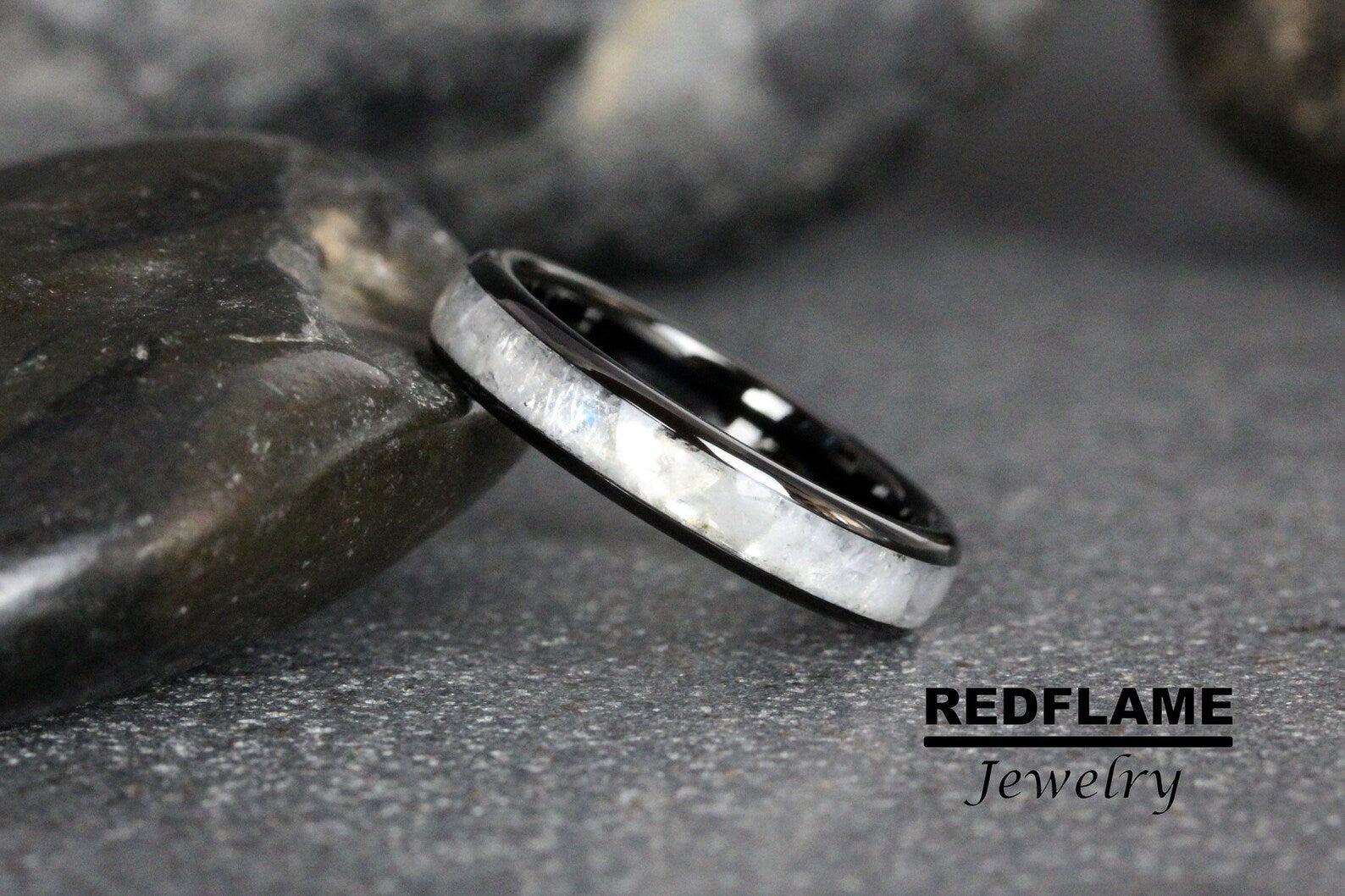 Rainbow Moonstone Tungsten Ring- Custom Order – TungstenRingStudio