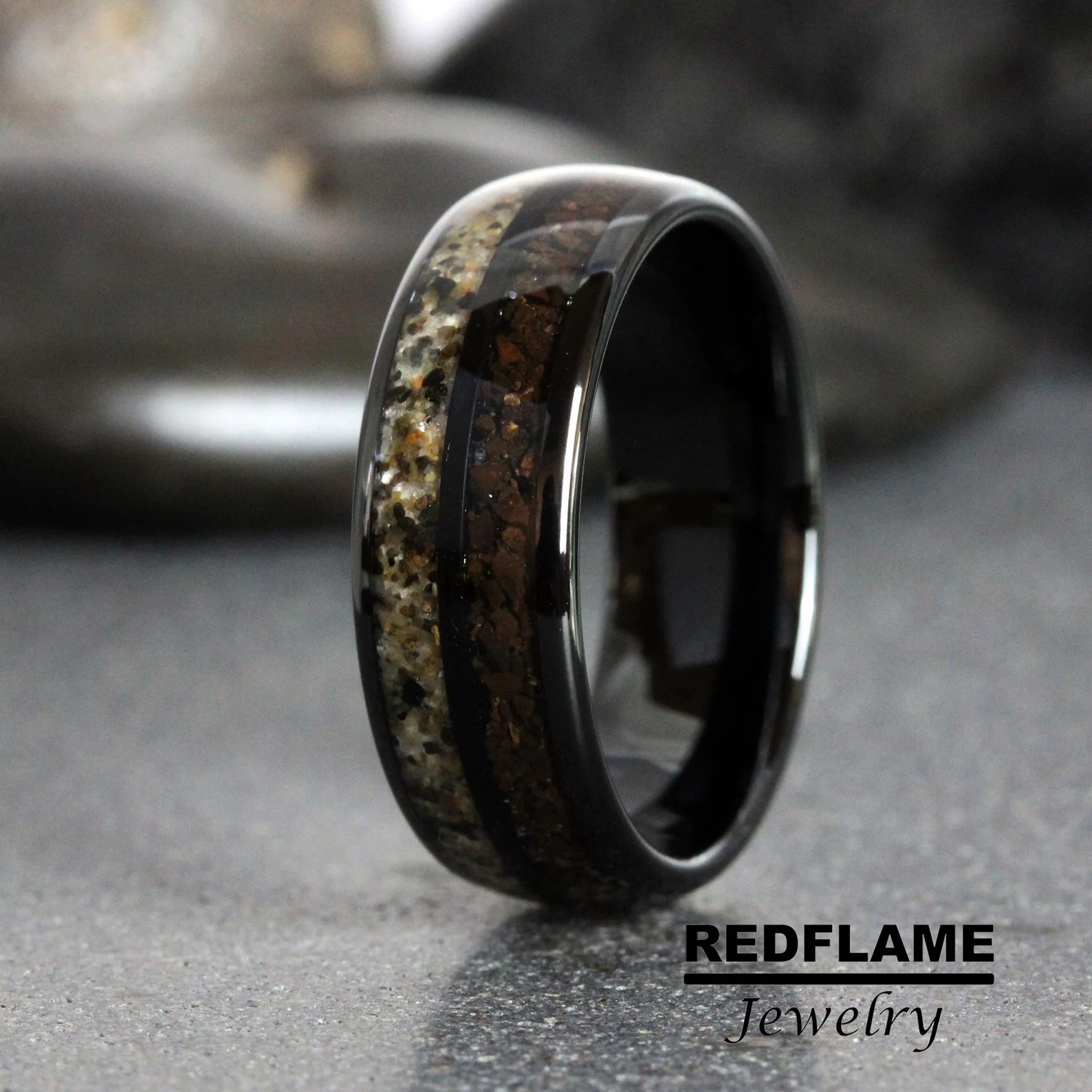 Your Sand Wedding Ring with Dark Dinosaur Bone